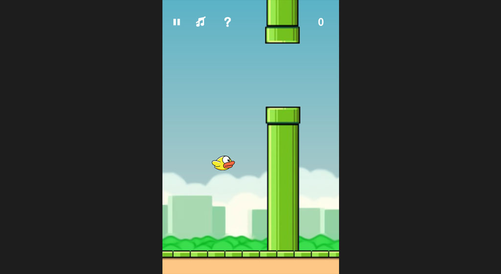 The game features a side-scrolling mechanic where the player controls a bird navigating through gaps between pipes. The player taps to make the bird flap and ascend, while gravity pulls it downward. The challenge lies in timing and precision to avoid collisions and score points.